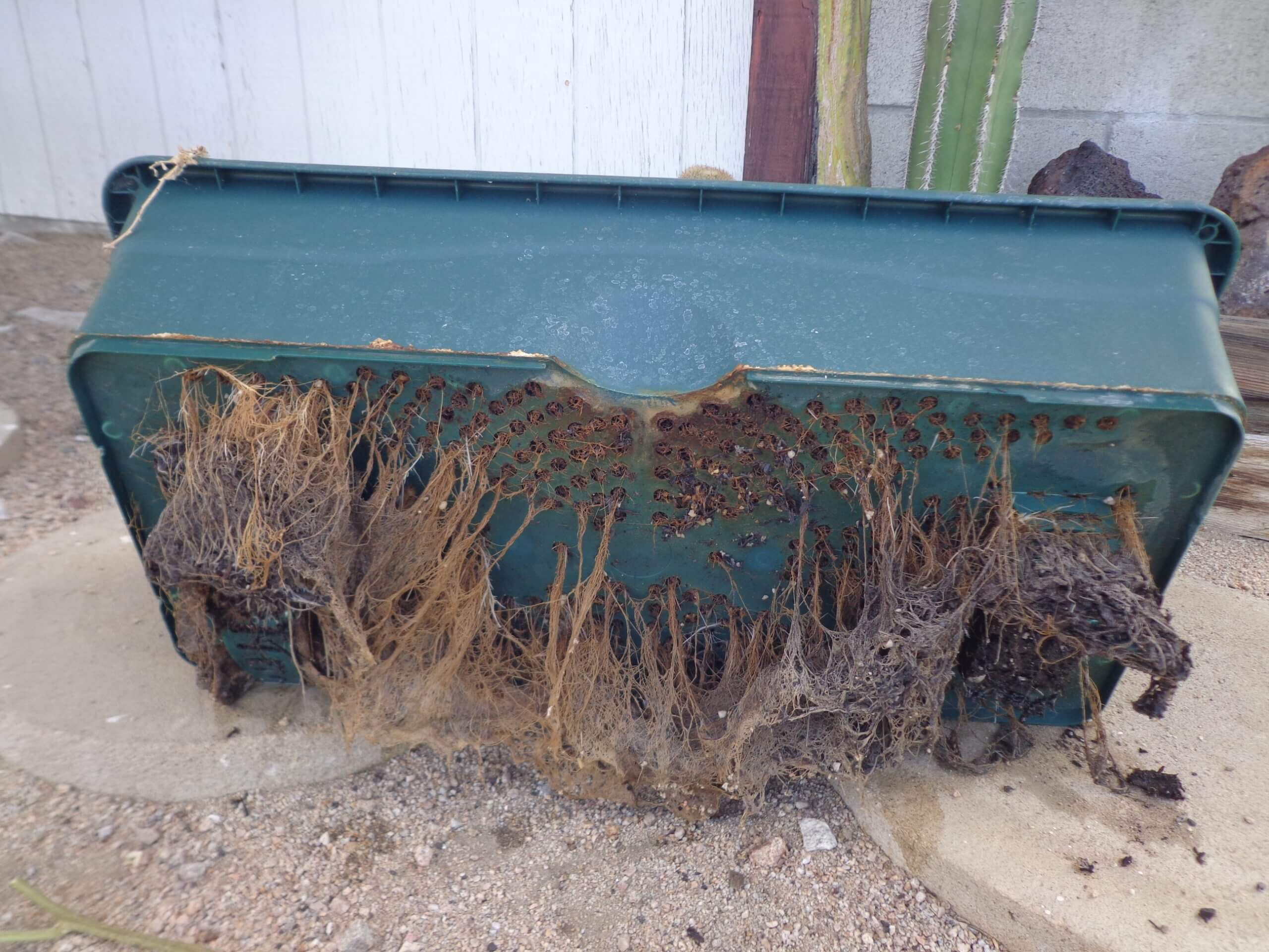The cause was revealed when I disassembled the boxes to take my first glimpse at the roots that should dangle down into the water reservoir. They were gone! I discovered this was due to a design flaw of the Grow Box: reservoir accessibility to mice in my greenhouse during our blistering desert summers when they are keen on cool, moist places. The Grow Box opening for water access is easy for any small rodent or insect to enter. When water was low or dry in between fill-ups, the mice entered the reservoir and literally ate all the dangling roots, explaining why my tomatoes suddenly quit taking up water. We finally captured the mice, but there may be more in the future. I’ll be fashioning a hardware cloth cover for the fill holes of my six Grow Boxes to keep smaller creatures out, or the very same thing will happen again in this rodent-rich desert, particularly if grown outdoors on porch or patio!